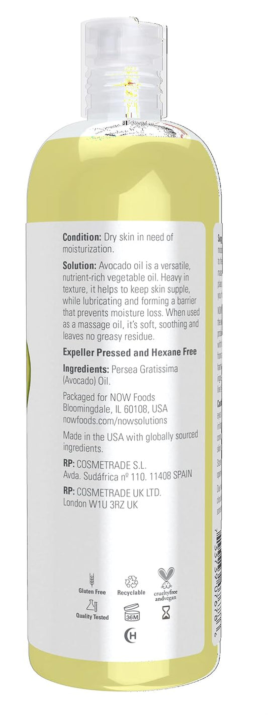Solutions, Avocado Oil, 100% Pure Moisturizing Oil, Nutrient Rich and Hydrating, 16-Ounce